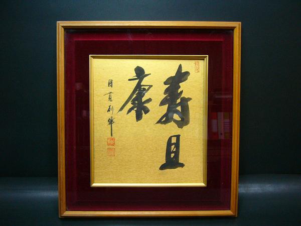 (左) 鎌倉市由比ガ浜 垣立先生 刻字作品 刻字の表面に金箔が押してあります 刻字も板のままと額装したものでは 見栄えが違います |